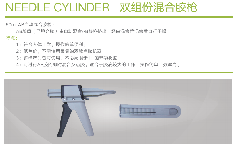 AB膠筒由自動混合AB膠槍擠出,經由混合管混合后自行干燥!